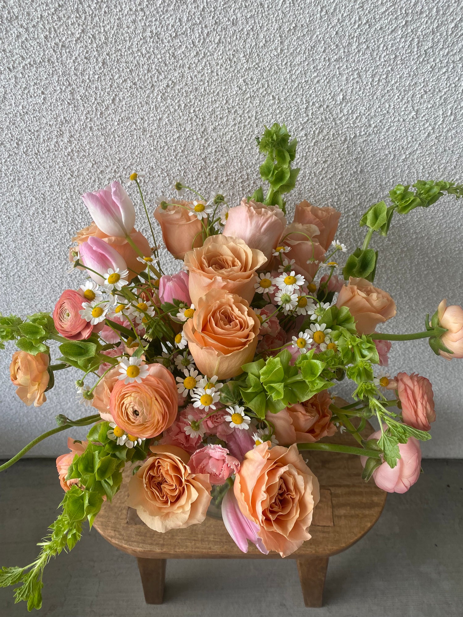 a multi varietal designed centerpiece that comes in a floral vessel. similar to our bunches, this is a seasonal arrangement that is locally sourced from southern california. centerpieces will vary each week depending on seasonal availability. this also ensures that you'll always be receiving the freshest blooms.